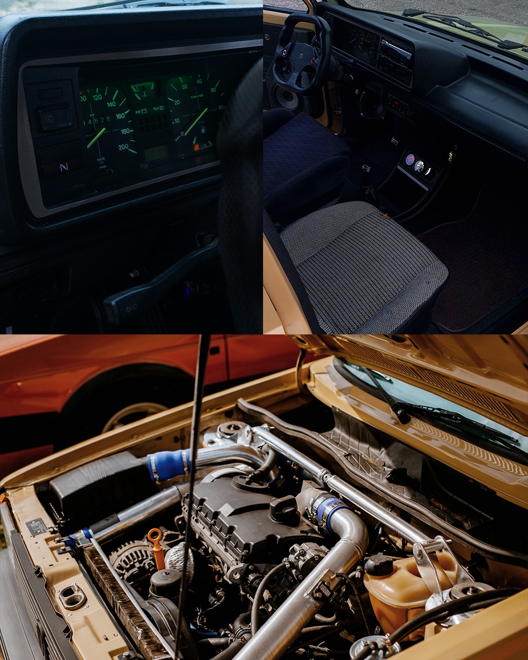 — Подвеска перед Bilstein b12, зад KYB Ultra SR на пружинах занижения, передние опоры BB Customs с регулировкой развала/кастора.