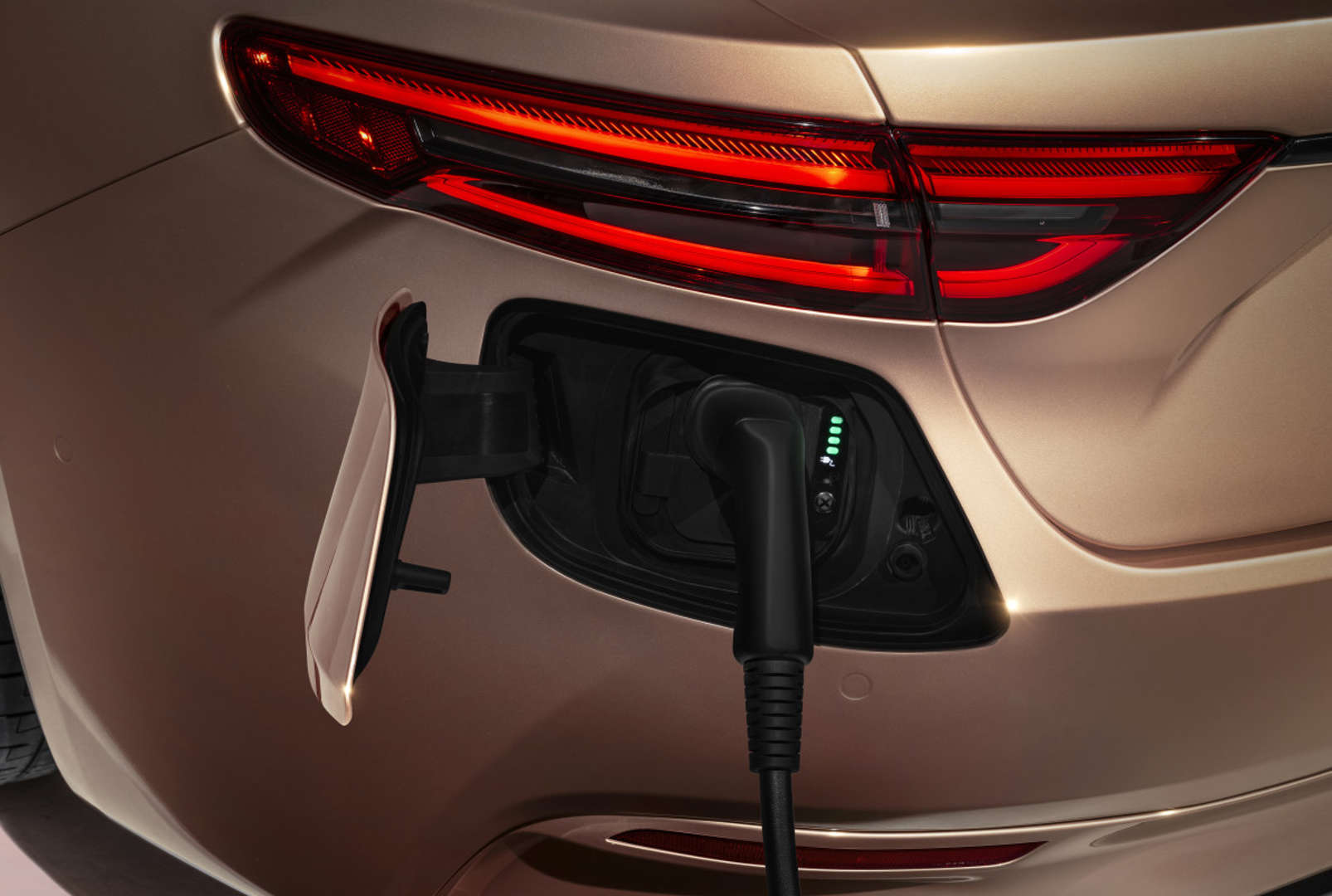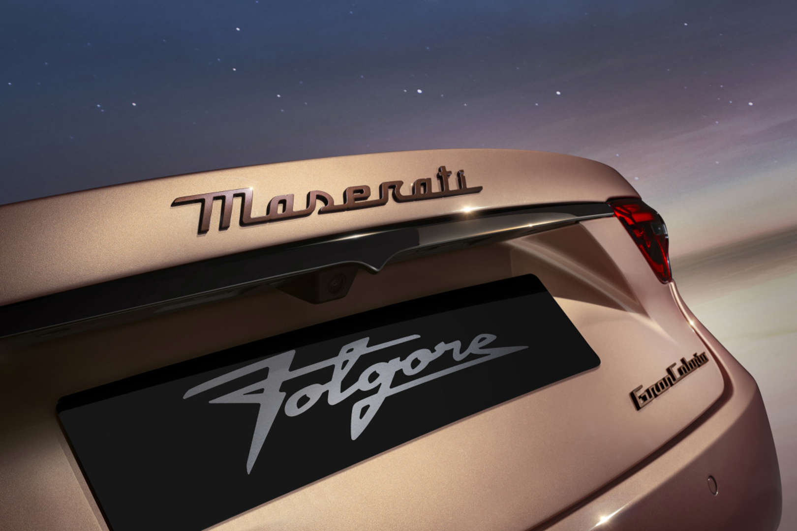 При высоте всего 1365 мм Folgore, безусловно, имеет спортивную привлекательность. Folgore не так уж сильно отличается от Trofeo или Modena. Самое большое различие — это внешний вид решетки радиатора. Модель поставляется с анодированными тормозными суппортами и светящимися тройными боковыми воздухозаборниками. У электрического GranCabrio сзади нет выхлопных труб, но очень просто узнать комплектацию. Достаточно взглянуть на значок над тройными боковыми вентиляционными отверстиями, на котором написано «Trofeo», «Folgore» в темном медном цвете или пустой шильдик для Modena.