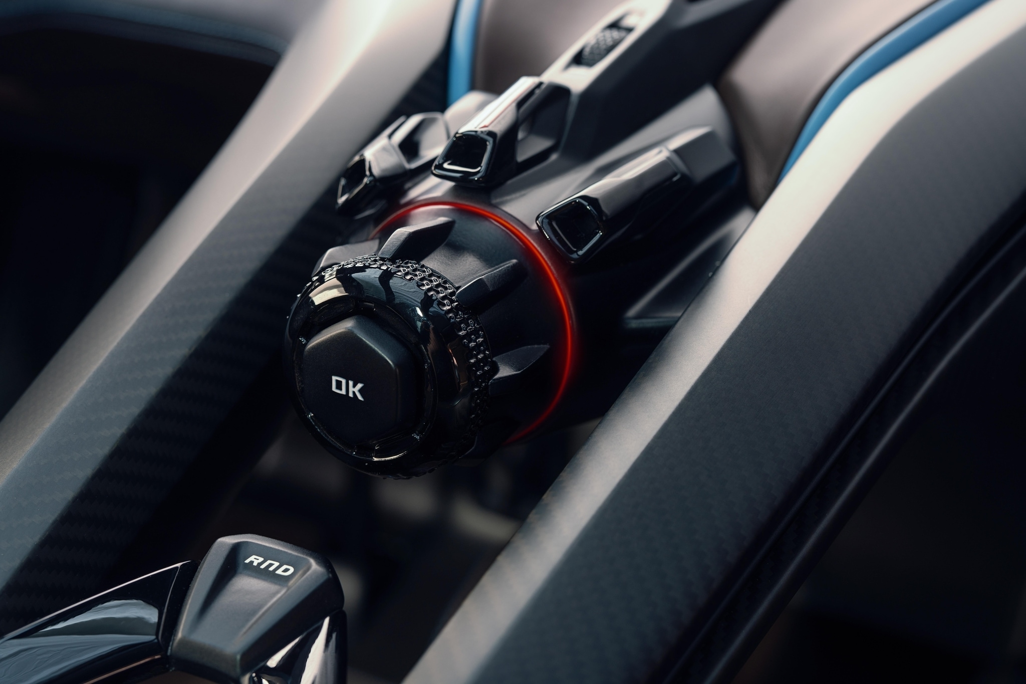Внутри автомобиля расположен большой Y-образный центр управления с сенсорными экранами. Он позволяет водителю контролировать всё, от климата до режимов движения. Пассажиры также могут видеть всю информацию о поездке, включая скорость и расстояние, на специальных дисплеях.
